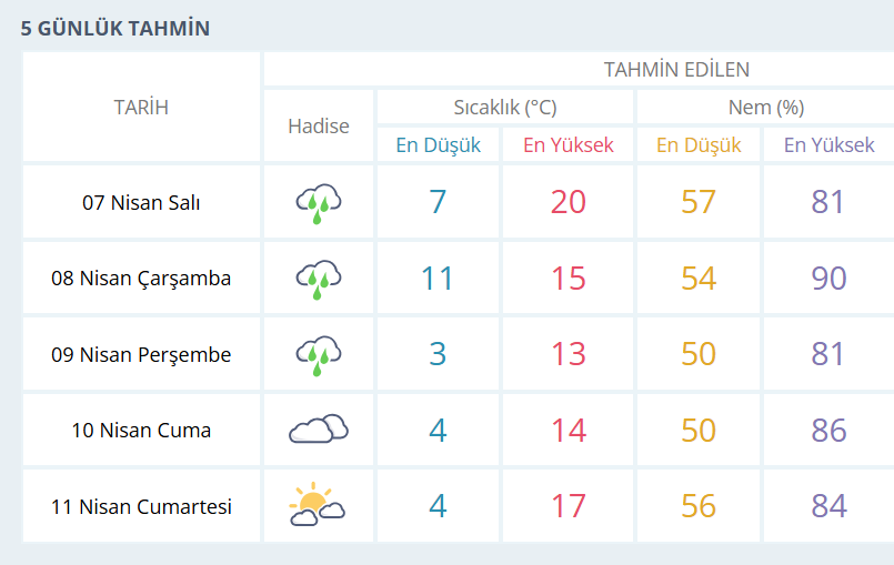 BURSA İÇİN 5 GÜNLÜK HAVA DURUMU TAHMİNİ