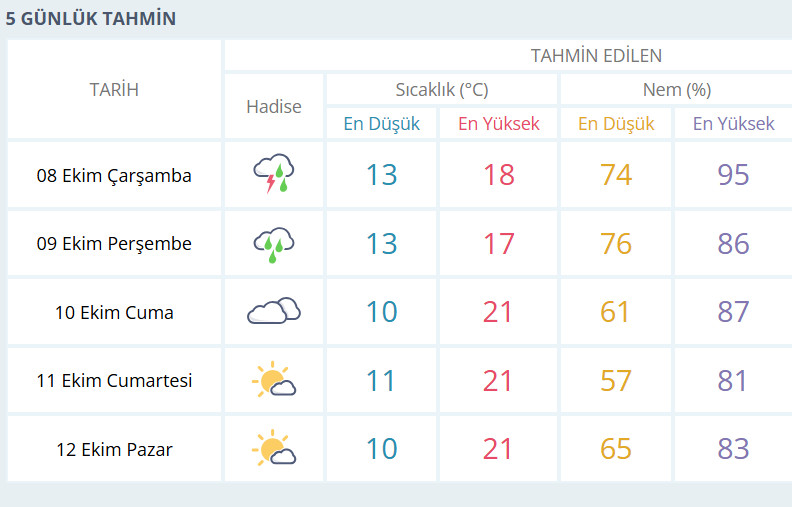 BURSA İÇİN 5 GÜNLÜK HAVA DURUMU TAHMİNİ