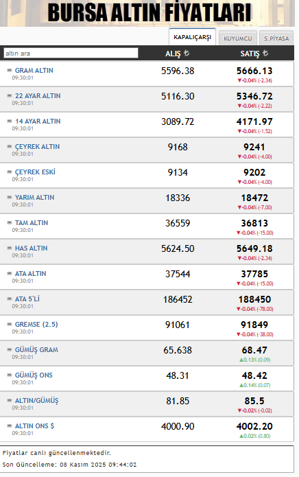 Sabah itibarıyla gram altın 5 bin 596 liradan alınırken, 5 bin 666 liradan satılıyor. Çeyrek altın 9 bin 168 liradan alınırken 9 bin 241 liradan satılıyor.