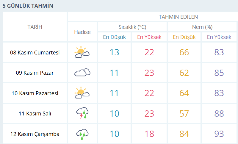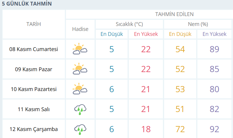 BURSA İÇİN 5 GÜNLÜK HAVA DURUMU TAHMİNİ