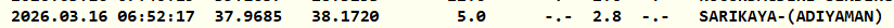 Kandilli Rasathanesi'nin verilerine göre deprem saat 06.52'de 2.8 büyüklüğünde gerçekleşti. Merkez üssü Adıyaman'ın Sarıkaya ilçesi olan deprem yerin 5.0 kilometre derinliğinde meydana geldi.