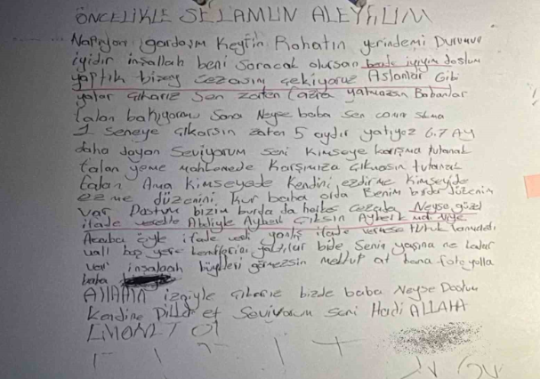 Sanık B.B. tarafından gönderilen mektupta, "Napıyon gardaşım, keyfin rahatın yerinde mi? Durumun iyidir inşallah. Beni soracak olursan iyiyim, yaptık bir şey cezasını çekiyoruz. Aslanlar gibi yatar çıkarız. Sen zaten fazla yatmazsın. Babanlar sana bakıyor mu? Neyse baba sen canını sıkma, 1 seneye çıkarsın. Zaten 5 aydır yatıyoruz. 6-7 ay daha dayan. Seviyorum seni. Kimseye karışma, tutanak yeme. Mahkemede karşımıza çıkmasın. Kimseye kendini ezdirme. Kimseyi de ezme. Kendi düzenini kur, benim burada düzenim var. Neyse güzel ifade verelim de Abdi’yle Ayberk çıksın. Ayberk yanlış ifade vermese tutuklanmazdı. Boş yere kendilerini yaktılar. Bana fotoğraf yolla. Allah’ın izniyle çıkarız. Kendine dikkat et, seviyorum seni" ifadeleri yer aldı.