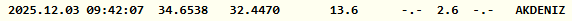 Kandilli Rasathanesi depremin ardından verileri paylaştı. Buna göre Akdeniz'de meydana gelen deprem saat 09.42'de 2.6 büyüklüğünde gerçekleşti. Kandilli bu depremin 13.6 kilometre derinlikte meydana geldiğini belirtti.