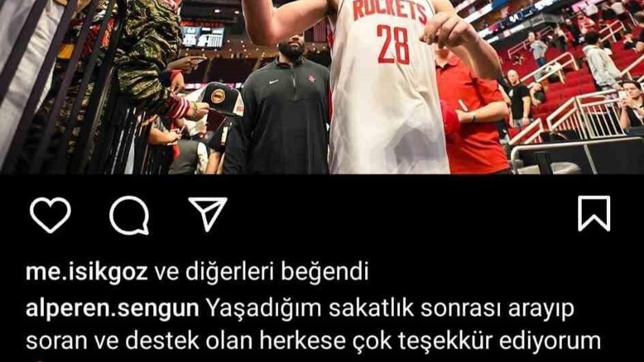 NBA takımlarından Houston Rockets forması giyen milli basketbolcu Alperen Şengün, Sacramento Kings maçında yaşadığı sakatlıkla alakalı açıklama yaptı. Alperen, dizinde herhangi bir problem olmadığını, bilek burkulması sebebiyle kısa bir tedavi sürecinden geçeceğini belirtti.