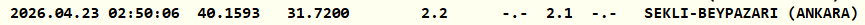 Kandilli Rasathanesi, Ankara'nın Beypazarı ilçesinde 2.1 büyüklüğünde deprem meydana geldiğini duyurdu. Saat 02.50'de gerçekleşen depremin derinliği 2.2 kilometre olarak ölçüldü.
