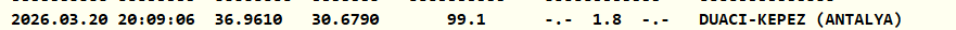 Saat 20.09'da kaydedilen sarsıntının 99,1 kilometre derinlikte gerçekleştiği bildirildi.