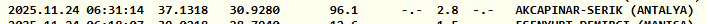 Paylaşılan verilerde depremin saat 06.31'de gerçekleştiği belirtildi. Serik merkezli deprem 2.8 büyüklüğünde, 96.1 kilometre derinlikte kaydedildi.