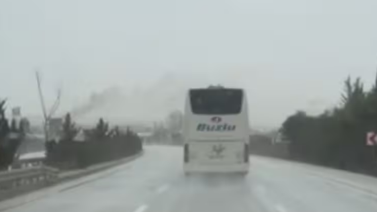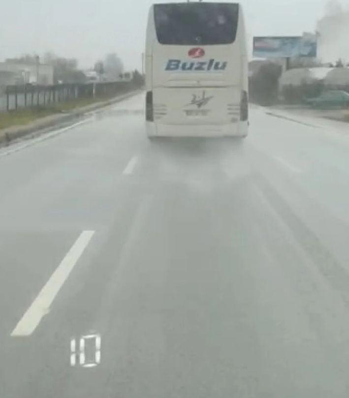 Görüntüyü kaydeden vatandaş, yaşanan duruma tepki göstererek, "110'la gidiyoruz, bu otobüsün arkasında olmamıza rağmen yine de ona yetişemiyoruz. Kuralların dışında gidiyoruz ama gene de yetişemiyoruz" dedi.