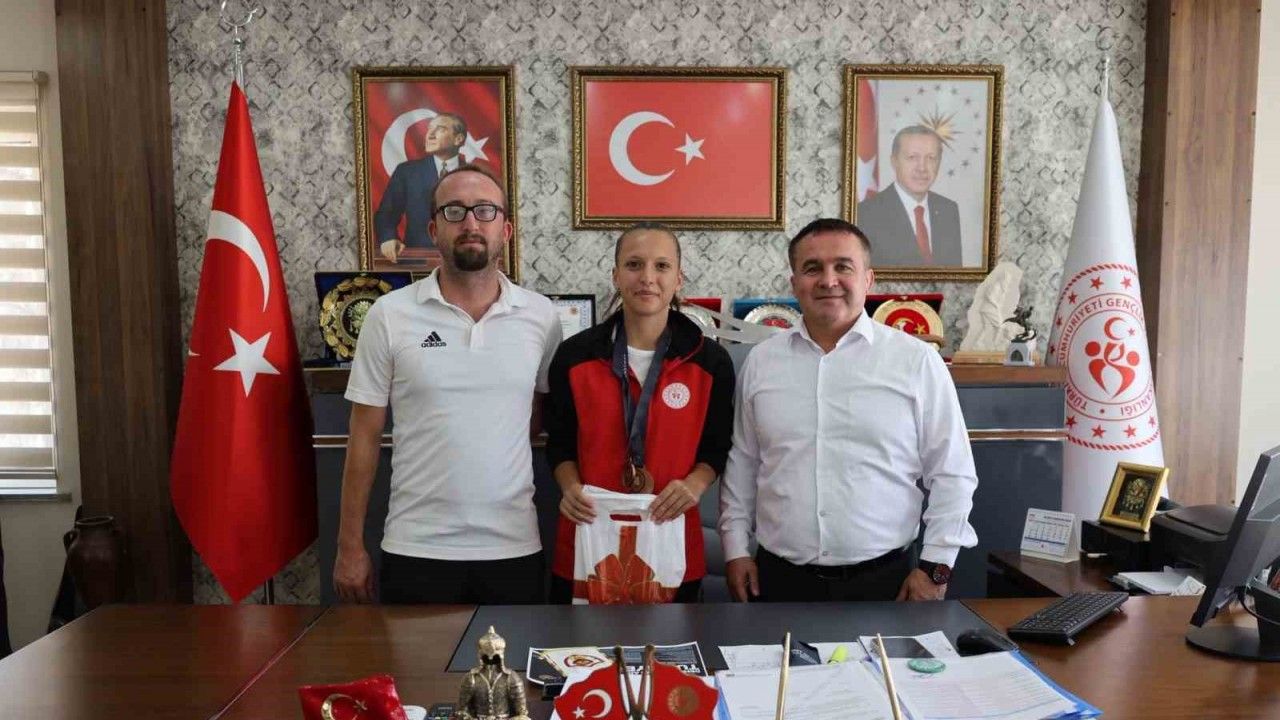 Genç sporcu Ayla Köse ve antrenörü Muhammet Köse, elde ettikleri derecenin ardından Bilecik Gençlik ve Spor İl Müdürü Ramazan Demir’i ziyaret etti. Ziyarette İl Müdürü Demir, sporcuyu ve antrenörünü tebrik ederek başarılarının devamını diledi. Atletizm branşında elde edilen bu derece, il spor camiası tarafından takdirle karşılandı. Sporcunun disiplinli çalışması ve antrenörünün rehberliğiyle gelen bu başarı, geleceğe yönelik umut verdi.