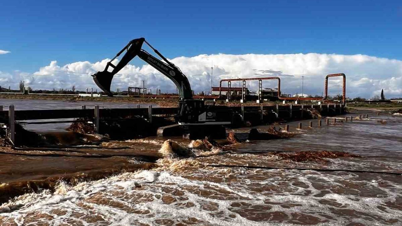 Çanakkale’nin Ayvacık ilçesinde etkili olan şiddetli sağanak yağış nedeniyle taşan Tuzla Çayında çalışmalar devam ediyor.
