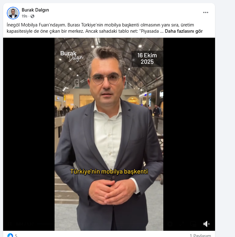 İnegöl’de düzenlenen 53. MODEF Expo Mobilya Fuarı’nı ziyaret eden Bağımsız Balıkesir Milletvekili Burak Dalgın, mobilya üreticileriyle bir araya geldi. Üretimde ciddi bir yavaşlama yaşandığını belirten Dalgın, “İnegöl’ü biliyorsunuz, mobilyanın başkenti ve Türkiye’nin önemli üretim üslerinden biri. Ancak OSB’de enerji tüketimi aylık 65 milyon kWh’den 32 milyon kWh’ye düşmüş. Yani üretim neredeyse yarı yarıya azalmış. Bu da reel sektörde çanların çaldığını gösteriyor. Ekonomide alarm zilleri çalıyor.” dedi.