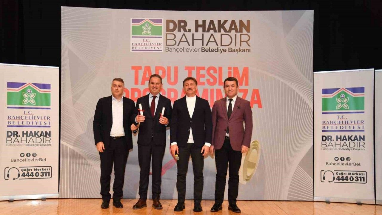 Basın Ekspres Aksı Bahçelievler Mevkii üzerinde binaları bulunan iş yerlerinin 40 yıllık tapu karışıklığı sorunu çözüldü. Tapudaki sorunları çözülen iş yeri sahipleri tapularını Belediye Başkanı Hakan Bahadır’dan aldı.