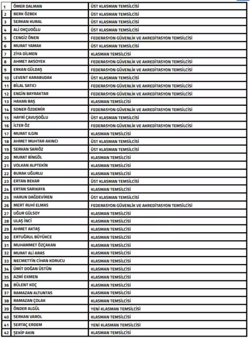 FEDERASYON GÜVENLİK VE AKREDİTASYON: Cengiz Önen, Ahmet Aksoyek, Erkan Güldaş, Bilal Satıcı, Engin Bayraktar, Soner Özdemir, İlter Öz, Mert Ruhi Elmas