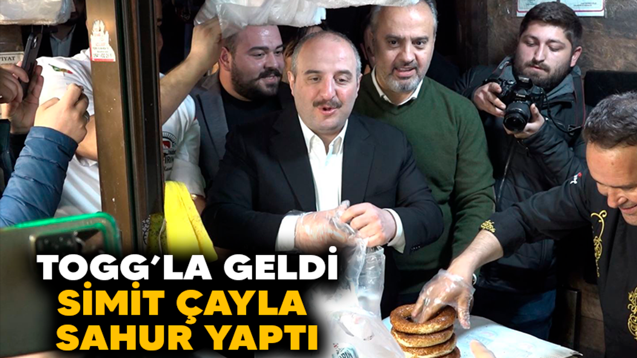 Gençlerle çay, simit, tahanlı pide eşliğinde sahur yapan Sanayi ve Teknoloji Bakanı Mustafa Varank da Bursa'nın Türkiye'nin marka illerinden biri olduğunu söyledi. Bursa'nın tarihiyle, kültürüyle, tarımıyla, sanayisiyle Türkiye'nin öncü şehirlerinden, marka şehirlerinden bir tanesi olduğunu vurgulayan Varank, "Önümüzdeki dönemde sizlerin teveccühüyle, eğer kabul ederseniz inşallah bu marka değerini daha da yükseltmek için ben bu şehre hizmet etmek üzere milletvekili adayı oldum. Togg gibi daha nice markaları bu şehirden çıkarmak üzere çalışmaya devam edeceğiz. Sadece Türkiye'nin markası değil tüm dünyada ses getiren Türkiye'nin otomobili Togg, aslında Bursalı ve Gemlik'teki fabrikada üretiliyor. Türkiye'nin yollarında vızır vızır işlemeye başladı. Tabii biz bunlarla yetinmeyeceğiz. Togg gibi daha nice markaları bu şehirden çıkarmak üzere çalışmaya devam edeceğiz. Yeter ki bir olalım, beraber olalım. Ay yıldızlı al bayrağımıza hizmet etmek için hep beraber hareket edelim. Evelallah biz bir oldukça, beraber oldukça bu ülkenin üstesinden gelemeyeceği hiçbir şey olmaz. Biz buna inanıyoruz. Bizim bu gayretimizde emin olun en önemli yol arkadaşımız genç kardeşlerimiz” diye konuştu.