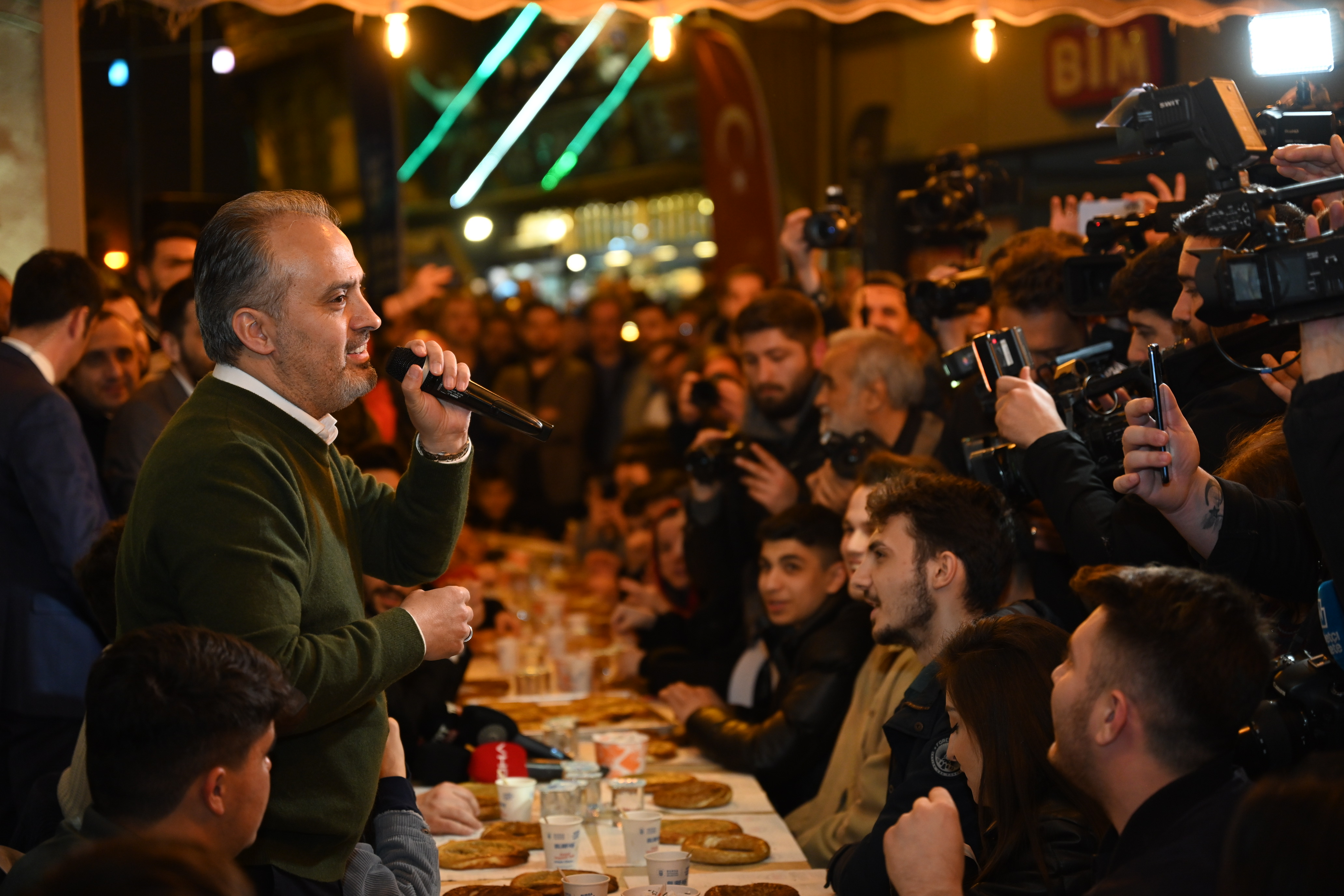 Sahur programında meydanı hınca hınç dolduran gençlere seslenen Bursa Büyükşehir Belediye Başkanı Alinur Aktaş, Osmanlı’nın ilk başkenti, ilk 6 padişaha ev sahipliği yapan Bursa’nın bir tarih ve kültür şehri olduğunu hatırlattı. Bursa’nın çok özel mekanları olduğunu hatırlatan Başkan Aktaş, “Biz Bursa'da yaşayanlar Bursa ile gurur duyuyoruz. Bursa gerçekten herkesin yaşamaktan gurur duyacağı, gıpta ettiği bir şehir. Bursa'nın o özel mekanlarından bir tanesi de işte şu an bulunduğumuz Abdal mekanı. Ama Abdal deyince tahanlı akla geliyor, simit, peynir, çay, zeytin akla geliyor. Bu akşam sahur soframızı beraber paylaşıyoruz. Bu birliğimiz, beraberliğimiz, heyecanımız, dinamizmimiz, kardeşliğimiz olduğu sürece Allah’ın izniyle hiçbir güç bu ülkeyi yıkamayacaktır. Hiçbir güç bu ülkeyle alakalı olumsuz hesap yapamayacaktır” dedi.