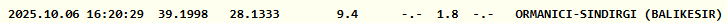 Kandilli Rasathanesi'nden alınan bilgilere göre deprem saat 16.20'de 1.8 büyüklüğünde gerçekleşti. Sındırgı merkezli depremin yerin 9.4 kilometre derinliğinde meydana geldiğini açıklandı.