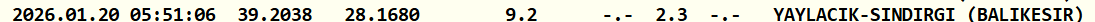 Balıkesir’in Sındırgı ilçesinde saat 05.51’de 2,3 büyüklüğünde bir deprem meydana geldi. Yerin 9,2 kilometre derinliğinde gerçekleşen sarsıntının merkez üssünün Yaylacık-Sındırgı olduğu bildirildi.