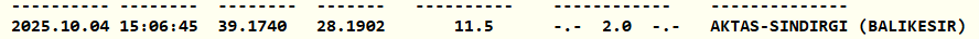 Kandilli Rasathanesi saat 15.06'da 2.0 büyüklüğünde olan depremin merkez üssünü Sındırgı olarak açıkladı. Deprem yerin 11.5 kilometre derinliğinde kaydedildi.