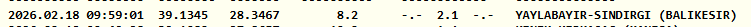 Kandilli Rasathanesi'nin verilerine göre deprem saat 09.59'da meydana geldi. Merkezi Sındırgı olan depremin büyüklüğü 2.1 olarak açıklandı. Derinliği ise 8.2 kilometre ölçüldü.