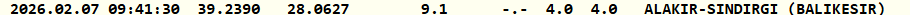 Kandilli Rasathanesi'nin internet sitesinde yer alan bilgiye göre, merkez üssü Sındırgı ilçesi olan 4 büyüklüğünde sarsıntı kaydedildi. Depremin 9.1 kilometre derinlikte meydana geldiği belirlendi.