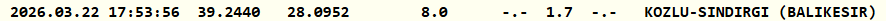 Kandilli'nin resmi internet sitesi üzerinden alınan bilgilere göre deprem saat 17.53'te 1..7 büyüklüğünde gerçekleşti. Sındırgı merkezli depremin derinliği 8.0 kilometre olarak kaydedildi.