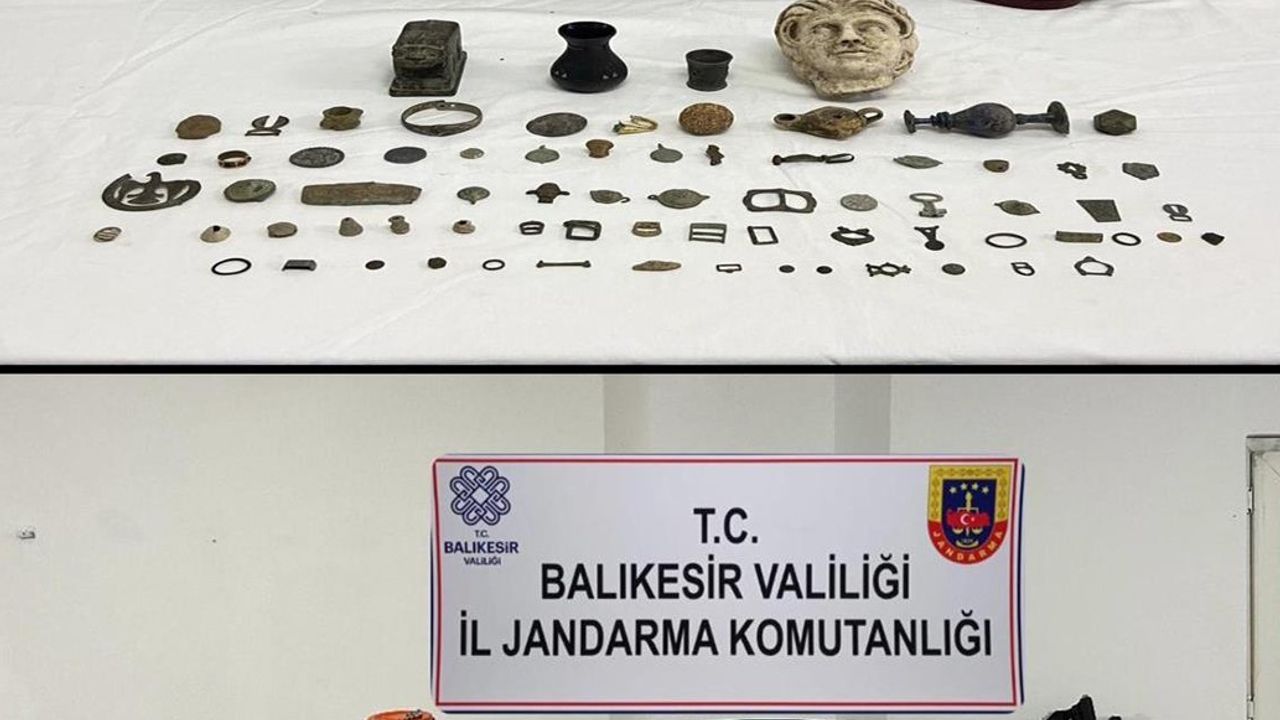 Balıkesir’de jandarma ekipleri iki ilçede izinsiz kazı ve tarihi eser kaçakçılığı yapan şahıslara yönelik operasyon düzenledi. Operasyonda çok sayıda tarihi eser ele geçirildi, 6 kişi gözaltına alındı.