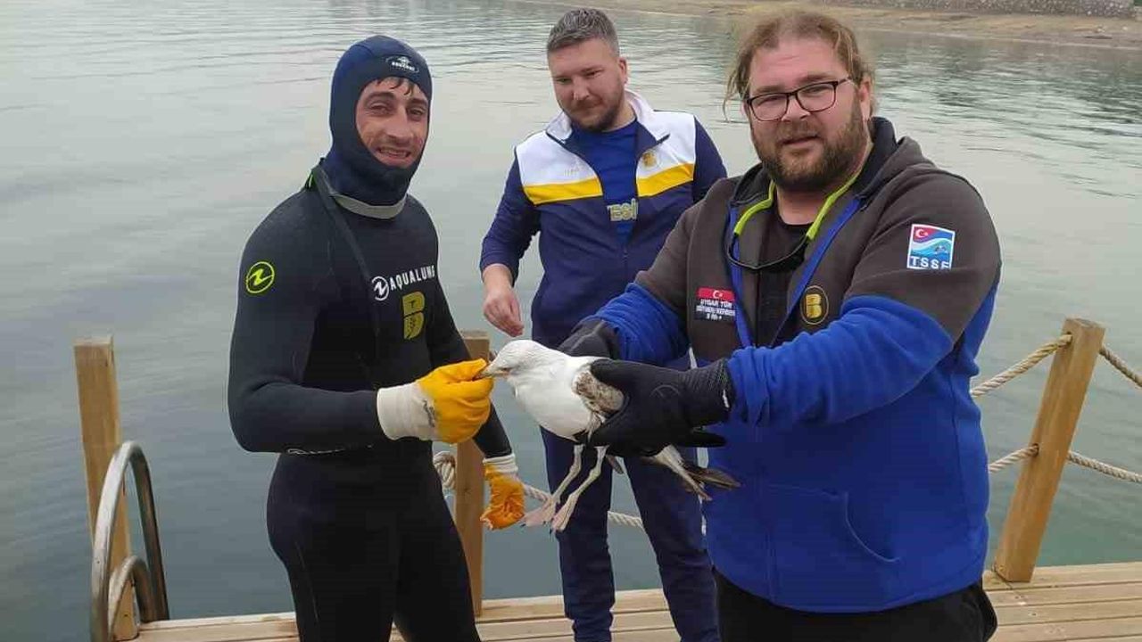 Balıkesir’in Gömeç ilçesinde, Dalış Köyünde görevli dalış lideri Burak Gürcan, oltaya takılan martıyı kurtardı. Denizde çırpınan martıyı kurtaran Gürcan, takdir topladı.