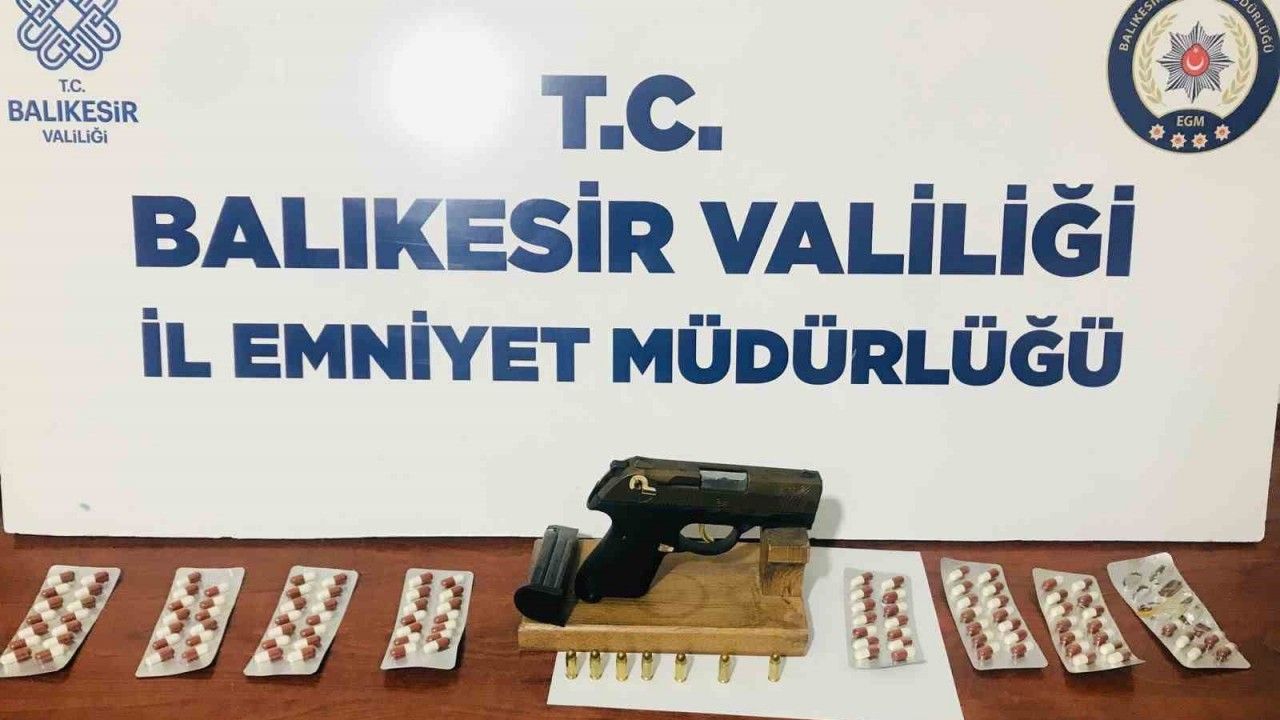 Bandırma, 100. Yıl Mahallesi’nde, Bandırma İlçe Emniyet Müdürlüğü Asayiş Büro Amirliği’n bağlı bekçiler tarafından durumundan şüphelenilen Ş.E. (23) isimli şahsa üst araması yapıldı. Ş.E.’nin üzerinden tam 102 adet uyuşturucu hap çıktı. Şahsın üzerinden ayrıca 1 adet ruhsatsız tabanca ve 8 adet fişek ele geçirildi.