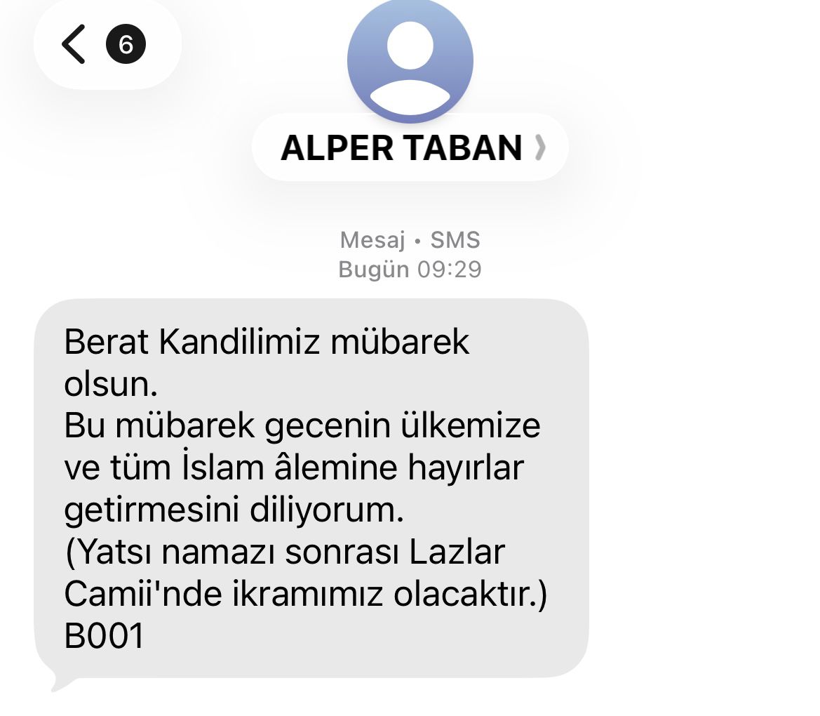 Başkan Taban mesajında, Berat Kandili’nin mübarek olmasını dileyerek, bu mübarek gecenin ülkemize ve tüm İslam alemine hayırlar getirmesi temennisinde bulundu. Taban ayrıca, Yatsı namazının ardından Lazlar Camii’nde ikram yapılacağını da vatandaşlara duyurdu.