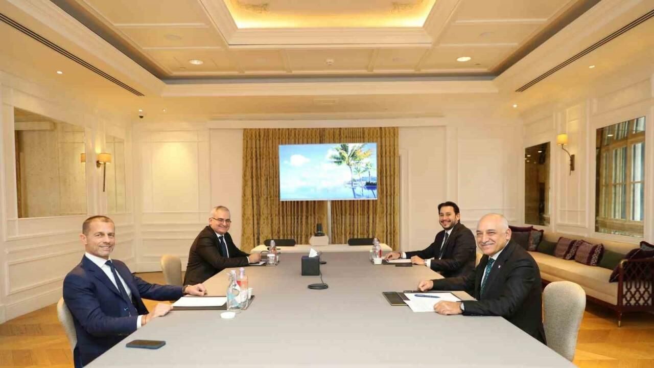 Türkiye Futbol Federasyonu Başkanı Mehmet Büyükekşi, UEFA Başkanı Aleksander Ceferin ile bir araya gelerek, gündeme dair konularla ilgili fikir alışverişinde bulundu.