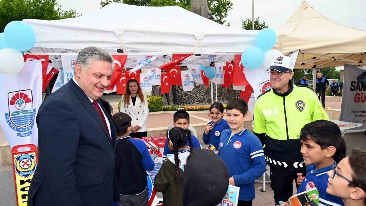 Yalova Belediye Başkanı Mehmet Gürel, Karayolları Trafik Haftası etkinlikleri çerçevesinde kurulan stantları ziyaret ederek uygulamalı trafik eğitimi alan çocuklara hediyeler verdi.