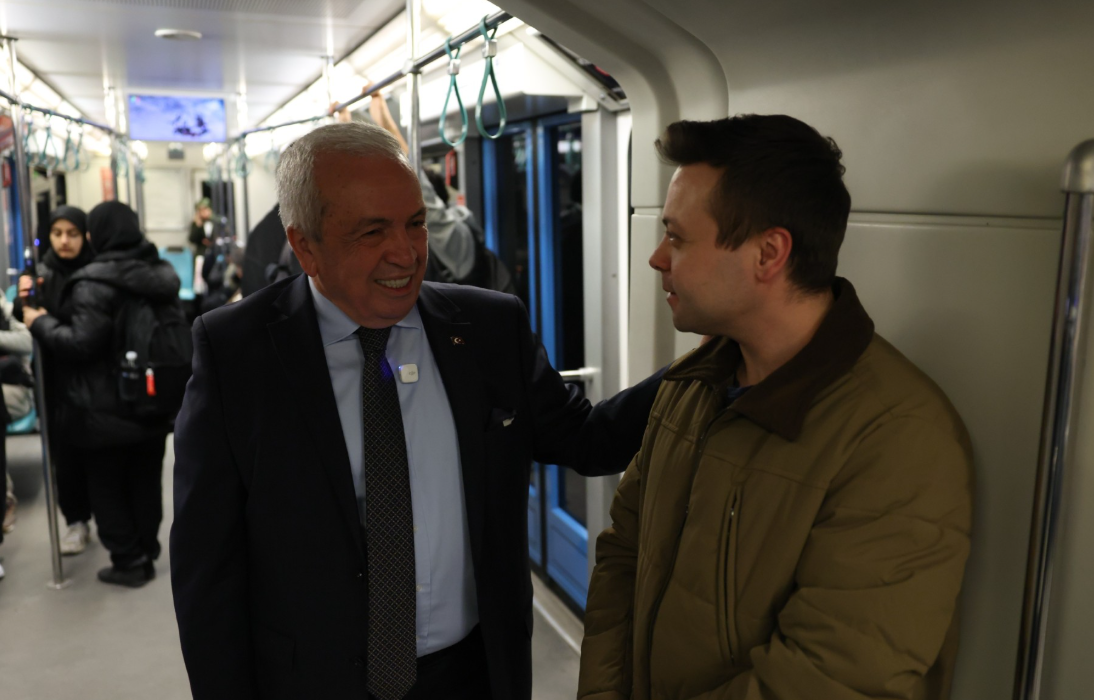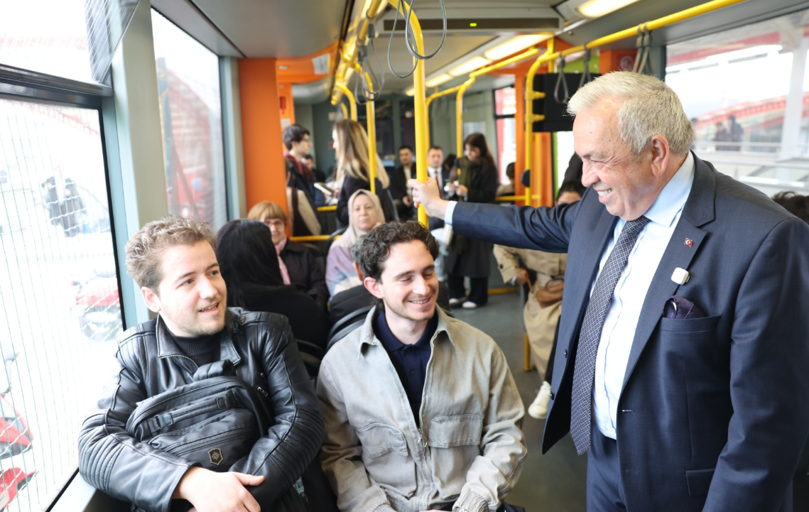 Yolculuk sırasında özellikle gençlerle yakından ilgilenen Başkan Şadi Özdemir, Uludağ Üniversitesi durağında inerek bölgede hizmet veren esnafıyla da selamlaştı ve hayırlı işler diledi.