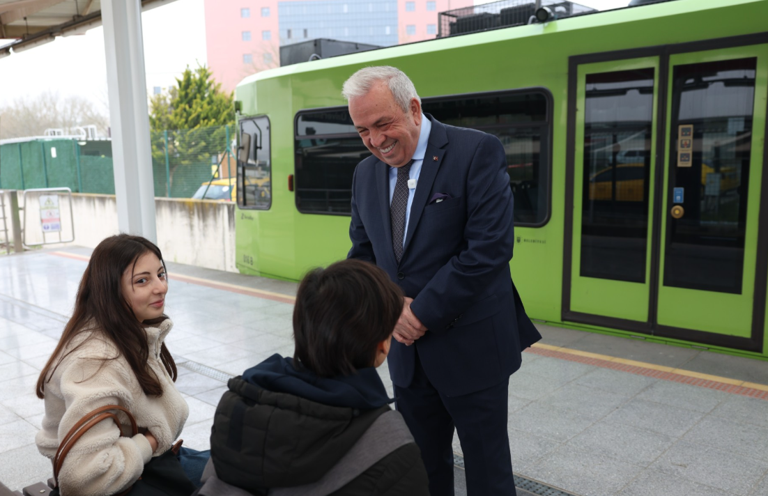 Üniversite durağından tekrar BursaRay’a binerek Nilüfer istasyonuna doğru yola çıkan Başkan Şadi Özdemir, yol boyunca vatandaşlarla sohbet etti.