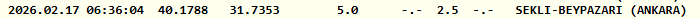 Kandilli Rasathanesi'nin paylaştığı verilere göre deprem saat 06.36'da kaydedildi. Ankara'nın Beypazarı ilçesinde meydana gelen deprem 2.5 büyüklüğünde gerçekleşti. Derinliği ise 5.0 kilometre olarak açıklandı.