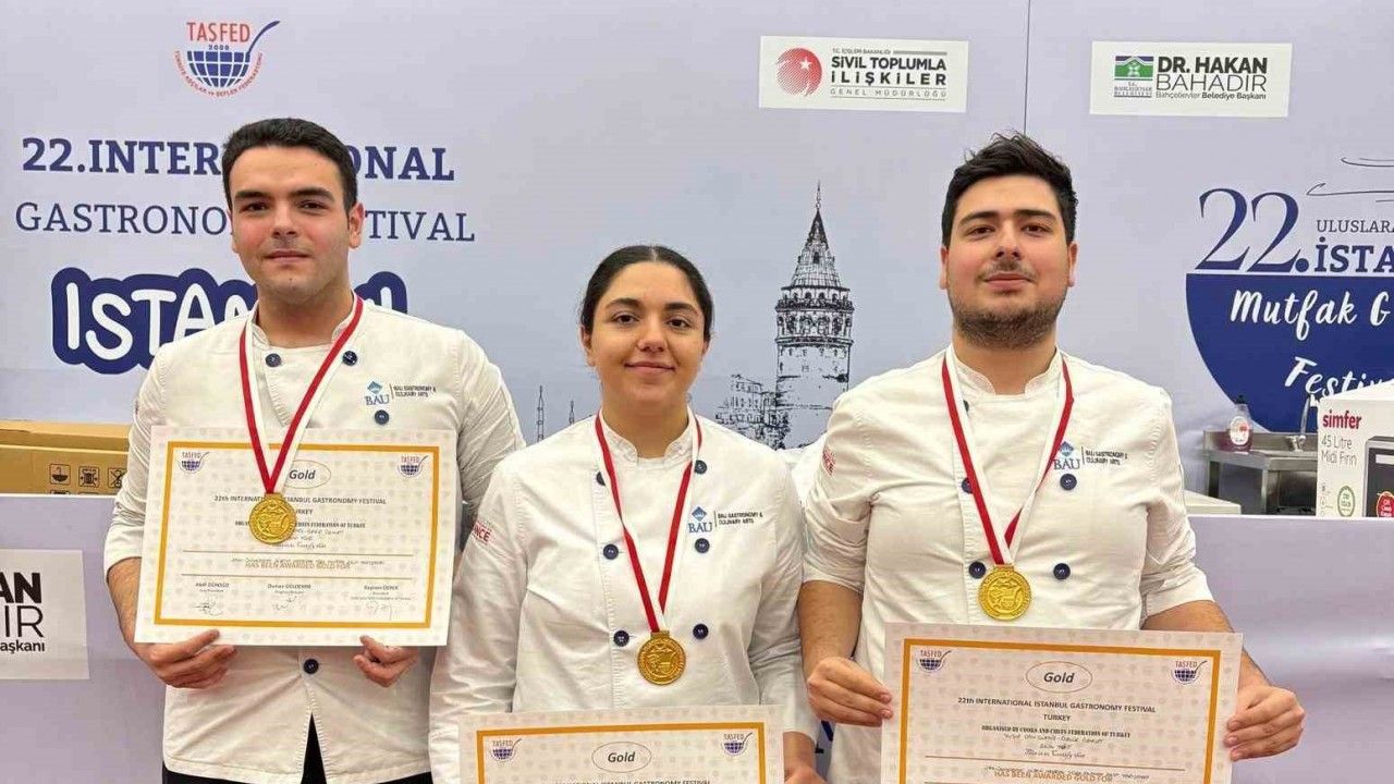 "Modern Türk Mutfağı" kategorisinde yarışan öğrenciler ise başlangıç yemeği olarak; isli yoğurt üzerine kızılcık sosu, muhammara ve maydonoz köpüğü eşliğinde kuzu ciğeri dolgulu mantı hazırladılar. Ana yemek olarak, firik keşkek üzerine madalyon kebap servis ettiler. Tarçından hazırlanmış toprak üzerinde nar, kuru kayısı, kuru incir, fındık, antep fıstığı, kuş üzümü ve buğday dondurmasıyla sunulan aşureyle de final yaptılar. Öğrenciler hazırladıkları yemeklerle BAU’ya ikinci altın madalyayı kazandırdı.