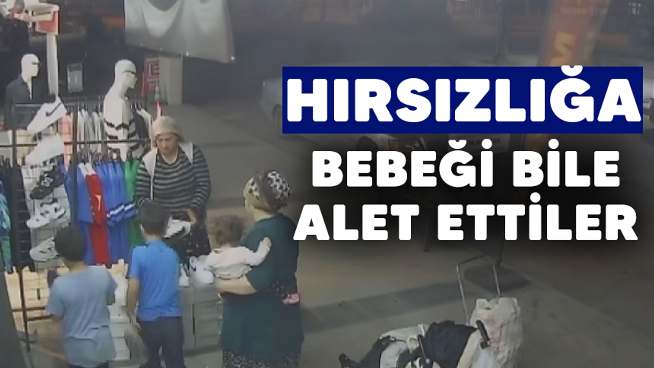 Kocaeli'nin Körfez ilçesinde 2 kadın, bebek ve 2 çocuğu hırsızlığa alet etti. Çocuklardan biri kaşla göz arasında çaldıkları ayakkabıları bebek arabasına koyarken, kadın ise üzerini örttü. Hırsızlık anı anbean güvenlik kamerasına yansıdı.