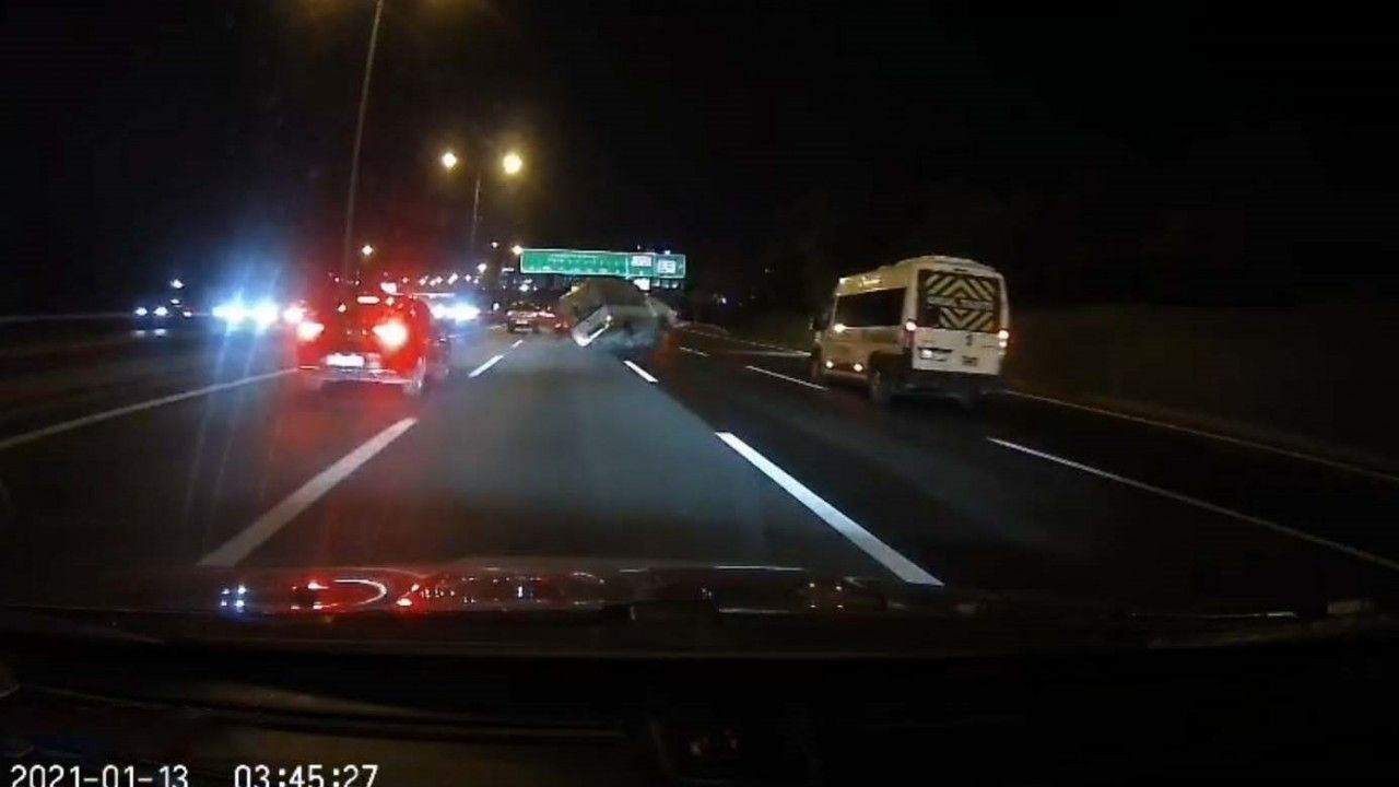 Kaza gece saatlerinde Kavacık Beykoz’da meydana geldi. TEM Otoyolu’nda seyir halindeki trafikte makas atarak ilerleyen bir araç adeta faciaya davetiye çıkardı. Araç içi kamerasına yansıyan görüntülerde, hızla makas atan otomobilin yan şeritte ilerleyen kamyonete çarparak takla attığı kaydedildi. Kaza nedeniyle trafikte kısa süreli yoğunluk yaşanırken, bölgede araçlar çekildikten sonra trafik normale döndü. Polis ekipleri tarafından kazayla ilgili inceleme başlatıldı.