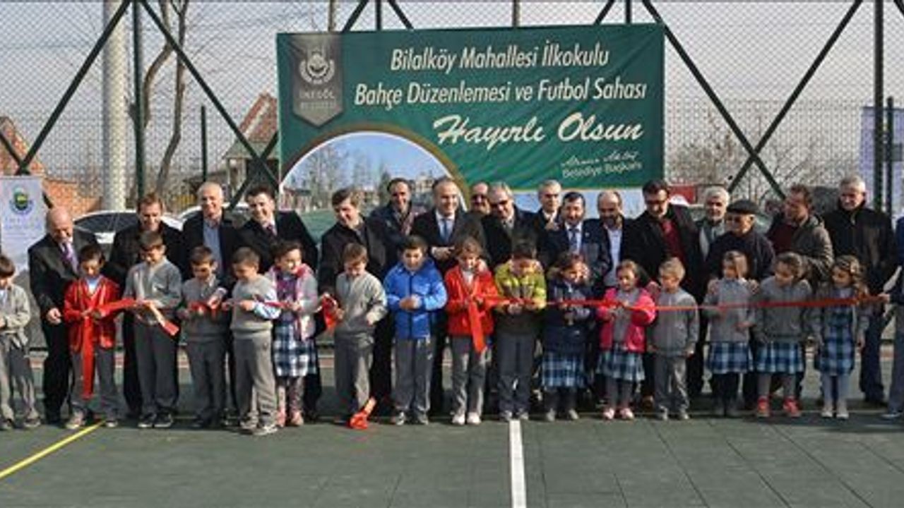 Bilalköy mahallesine yaptıkları çalışmaların okul bahçesiyle sınırlı olmadığını ifade eden Aktaş, “Asfalt çalışmalarımız, yol bakım çalışmalarımız, mahallemizin sokaklarında taş döşeme çalışmaları yapıldı. Bunun yanı sıra arı kovanı dağıtımlarından yine Bilalköy sakinlerimiz faydalandı. Yine Bilalköy Mahallesinin içme suyu ve kanalizasyon proje çalışmaları Buski tarafından tamamlandı. İnşallah 2016 yılı yatırım programı çerçevesinde mahallemizin 8 kilometrelik içme suyu ve kanalizasyon şebeke sistemleri tamamen yenilenecek. Bizler hizmetlerimizi yaparken merkezdeki vatandaşımızla, kırsaldaki vatandaşımızı birbirinden ayırmıyoruz. Hizmet noktasında gücümüzün yettiğince İnegöl´ün tamamına ulaşmaya çalışıyoruz. Şunu gönül rahatlığıyla söyleyebilirim ki elimizin değmediği, hizmetin ulaşmadığı kırsal mahallemiz yok. Hizmetlerimizin dur durak bilmeksizin devam edeceğini bir kez daha belirterek, yeni okul bahçemizin ve sahamızın okulumuza, öğrencilerimize ve mahalle sakinlerimize hayırlı olmasını temenni ederim” dedi.