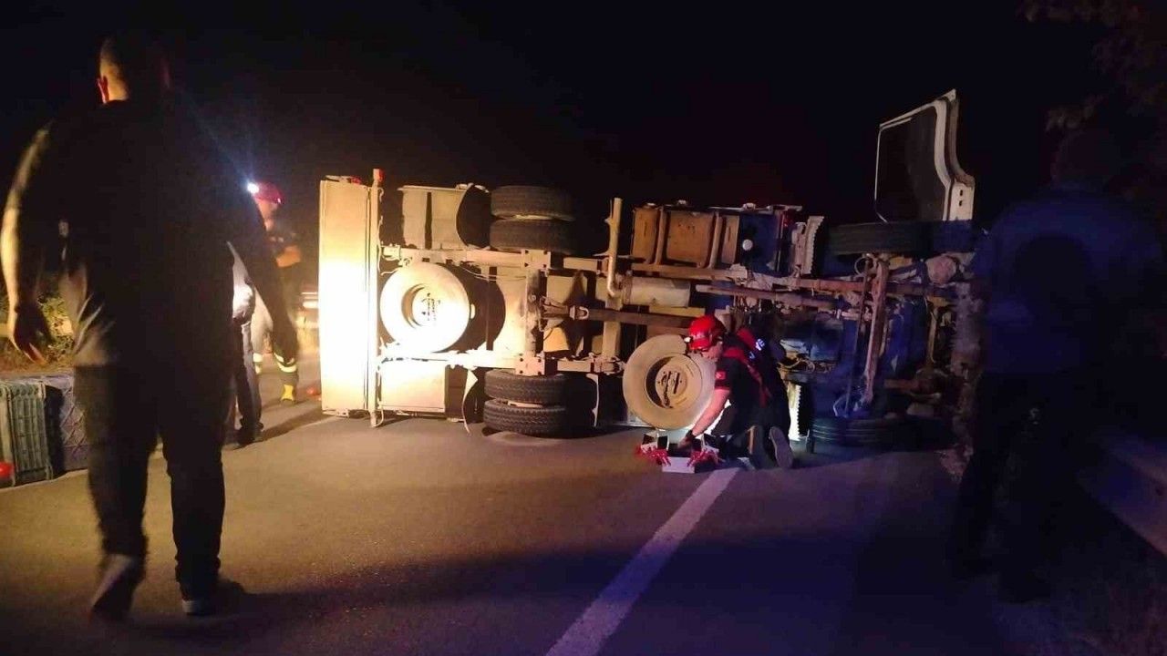 Alınan bilgilere göre kaza dün gece Söğüt-Bilecik karayolu Yeniköy köprüsü mevkiinde meydana geldi. Bilecik’in Söğüt ilçesine bağlı Tuzaklı Köyü’nden yüklediği domatesleri Sakarya’da götürmek üzere yola çıkan Ali A. yönetimindeki 07 BNE 566 plakalı kamyonun sürücüsü aracın bir anda direksiyon hakimiyetini kaybetti. Kontrolden çıkan kamyon devrilirken, meydana gelen trafik kazasında sürücü ve araç içinde yolcu olarak bulunan Recep Y. yaralandı. Yaralılar olay yerine gelen 112 Acil Servis ekiplerince yapılan ilk müdahalenin ardından Bilecik Eğitim ve Araştırma Hastensine kaldırıldı.