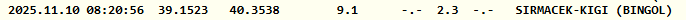 Kandilli Rasathanesi depremin saat 08.20'de gerçekleştiğini belirtti. Kiğı merkezli deprem yerin 9.1 kilometre derinliğinde kaydedildi.