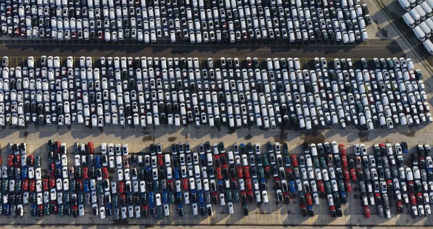 Dron ile kaydedilen görüntülerde araçların neredeyse limanın tamamını kapladığı, kilometrelerce uzanan dizilim oluşturduğu görüldü.