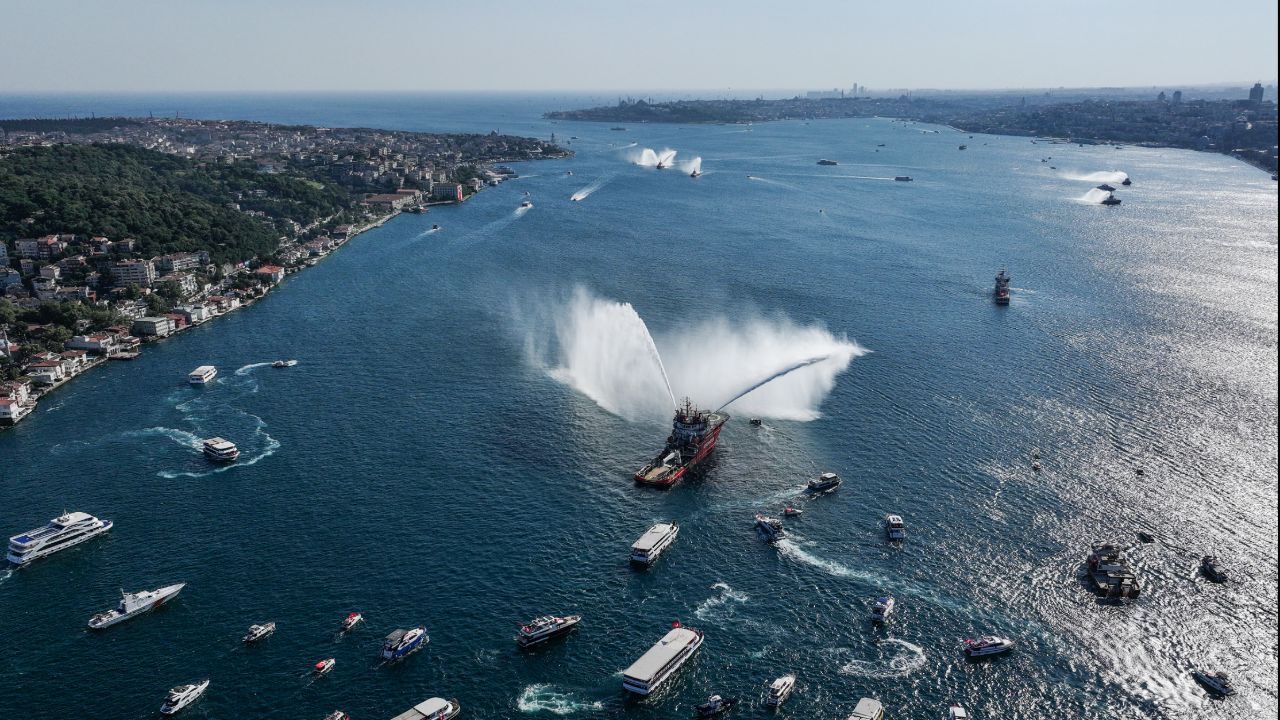 Türk bayraklarıyla süslenen tekneler boğazı selamladı ve bu anlar havadan görüntülendi. 15 Temmuz Demokrasi Destanı'nın üzerinden geçen 9 yıl boyunca, Türk milleti o gece verdiği mücadeleyi unutmadı. FETÖ'cü teröristler, asker üniforması ve silahlarını gasp ederek halka karşı kullanmış, millet ise tek yürek olarak karşılık vermişti. O gece 253 kişi şehit düştü, 2 bin 700’den fazla kişi gazi oldu. 15 Temmuz Demokrasi ve Milli Birlik Günü kapsamında yapılan kortejde, Sahil Güvenlik Marmara ve Boğazlar Bölge Komutanlığı’na ait gemilerin yanı sıra Kıyı Emniyeti Genel Müdürlüğü’ne bağlı Nene Hatun Acil Müdahale Gemisi, iki römorkör, üç hızlı can kurtarma botu ve iki bot da yer aldı. İstanbul Boğazı’nı adeta kırmızı beyaza boyayan tekneler, görsel bir anma gerçekleştirdi. 15 Temmuz Derneği Genel Sekreteri Kaan Şahin, anlamlı güne ilişkin açıklamasında, o gece milletin cesaretine tanıklık ettiğini ve bugün şehitlerin ruhu için düzenlenen korteje katılımın kendilerini onurlandırdığını ifade etti.