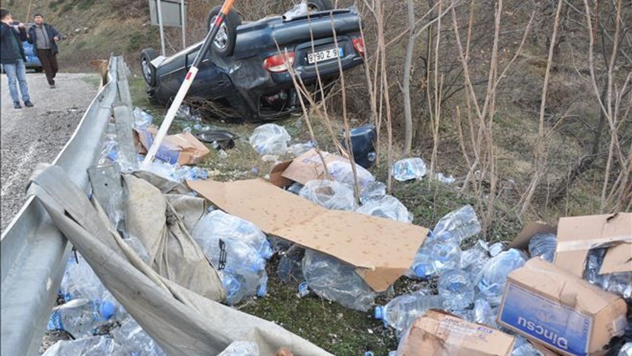 Edinilen bilgilere göre, Kütahya´nın Domaniç ilçesi istikametinden İnegöl istikametine seyir halinde olan sürücü Musa Kurt yönetimindeki 34 NT 7259 plakalı TIR seyir halindeyken dorsesinde bulunan çadır açıldı. Brandanın açılması ile birlikte dorsesinde yüklü olan yaklaşık 26 tonluk su yola devrildi. Yerde sürüklenen TIR´ın brandası bu esnada karşı istikametten seyir halinde olan sürücü 38 yaşındaki Mahmut Akay yönetimindeki 16 Z 0646 plakalı özel otomobilin sol ön tekerleğine sıkıştı. Direksiyon hakimiyeti kaybolan özel otomobil önce yolun sağındaki bariyerlere çarptı, ardından da bariyerleri aşarak ters döndü. Kaza sonucu otomobil sürücüsü ile otomobilde bulunan 9 yaşındaki Rabia Akay, 72 yaşındaki Ahmet Durgut ile 73 yaşındaki Ahmet Akay yaralandı.