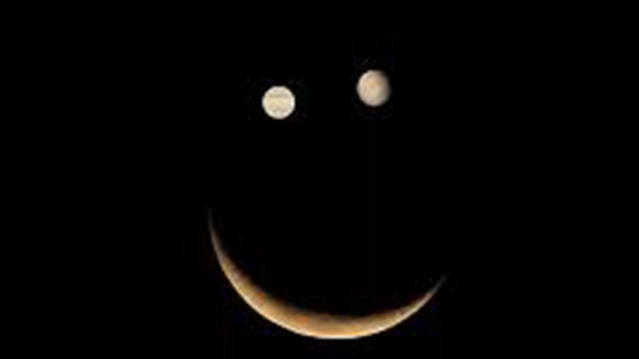 Hilal şeklindeki Ay bir ağız, Satürn ve Neptün ise bu gülümsemenin üzerindeki iki göz gibi görünecek.