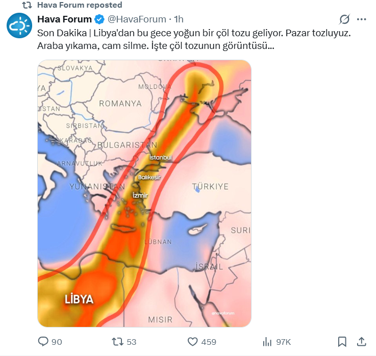 "Libya'dan bu gece yoğun bir çöl tozu geliyor. Pazar tozluyuz. Araba yıkama, cam silme..."