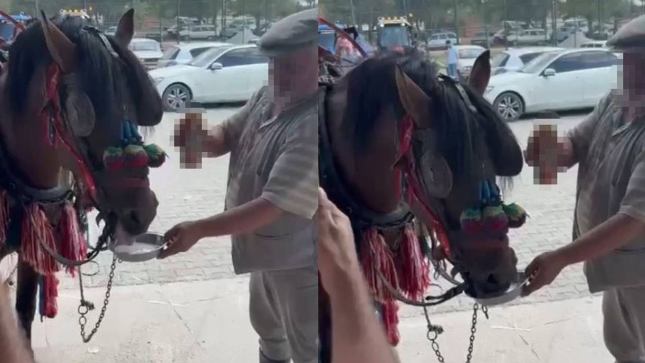 Edinilen bilgiye göre; Muğla’nın Yatağan ilçesinde C.Ö. isimli bir şahıs, oğlu için sünnet düğünü yaptı. Düğün programı kapsamında sünnet çocuğunu gezdirmesi için fayton çağırıldı. Yatağan Ahmet Toksöz Caddesi’nde sünnet çocuğunu fayton ile taşıyacak olan ata, sahibi tarafından alkollü içecek verilmesi görenleri şaşırttı. Yemek tabağı içinde fayton atına alkol içirildiğini gören bazı vatandaşlar bu durumu cep telefonuyla kaydetti. Tepki çeken olayın görüntüleri kameralara bu şekilde yansırken, zavallı atın alkol bağımlısı yapıldığı görüldü.