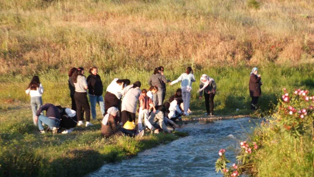 Öğrencilerden Muhammet Enes Malkoç, “Bugün dereye taş atmaya geldim. Derslerimizin iyi olmasını bekliyorum. Ablalar, teyzeler geliyordu ben de geldim” dedi.