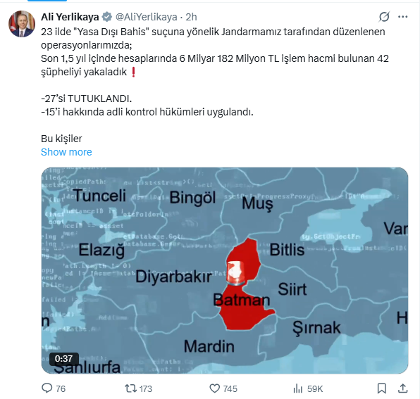 Operasyon kapsamında yakalanan şüphelilerden 27’sinin tutuklandığını, 15’i hakkında ise adli kontrol hükümlerinin uygulandığını açıkladı. Yerlikaya, bu kişiler aracılığıyla yürütülen yasa dışı bahis faaliyetlerinin engellenerek vatandaşların maddi ve manevi zarar görmesinin önüne geçildiğini ifade etti.