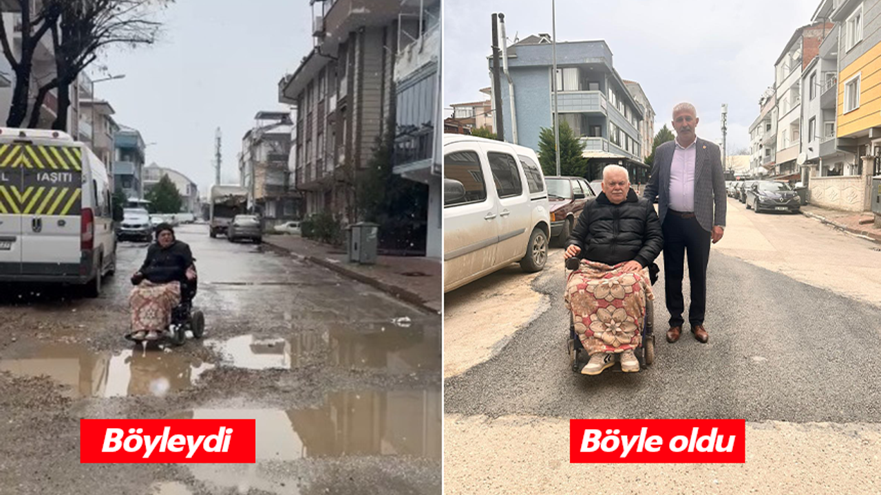 Tekerlekli sandalyesiyle çukurlu ve su birikintilerinin olduğu sokaktan geçemeyen Engelli vatandaşın görüntüleri gazetemizin yaptığı haberle gündeme taşınmıştı. Haberin ses getirmesi üzerine Hamidiye Mahallesi Muhtarı Mesut Ekren harekete geçerek, BUSKİ’den destek talebinde bulundu. Havaların düzelmesinin ardından Bursa Büyükşehir Belediyesi ekipleri bölgeye giderek yolda düzenleme ve asfalt yama işlemlerini tamamladı.
