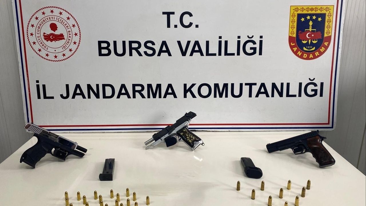 İnegöl Jandarma Komutanlığı ekipleri ekipleri ticari taksiyle yolculuk yapan Melih A.(24)'nın ruhsatsız tabancalar taşıdığı bilgisine ulaştı. Ekipler taksiyi yol üzerinde durdu. Arka koltukta yolculuk yapan Melih A.'nın üzerinde yapılan aramada 3 adet ruhsatsız tabanca ile mermileri ele geçirildi. Şüpheli gözaltına alındı. Sorgulamasının ardından adliyeye sevk edilen şahıs mahkemece adli kontrol şartıyla serbest bırakıldı.